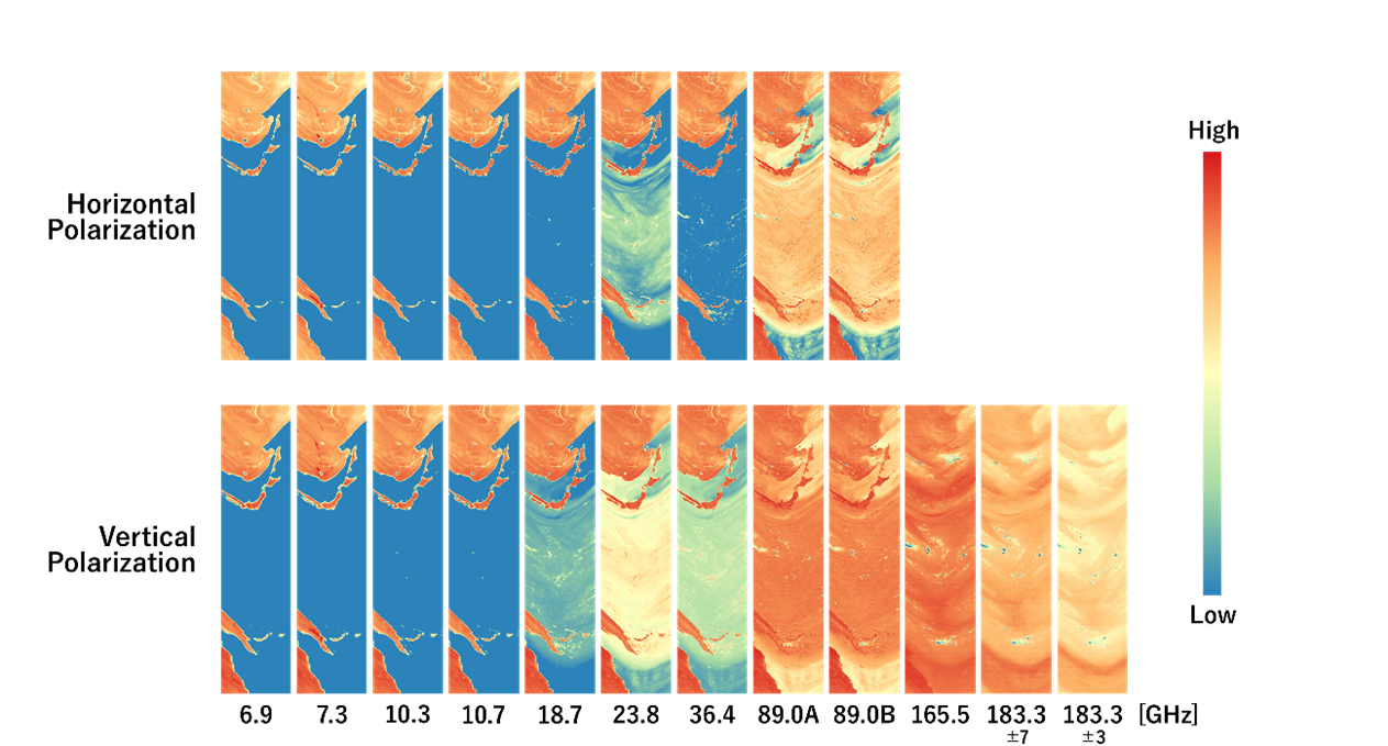 Figure 4:Observation around Japan by 21 channels equipped by AMSR3 (cropped from ascending path on August 16, 2025)
