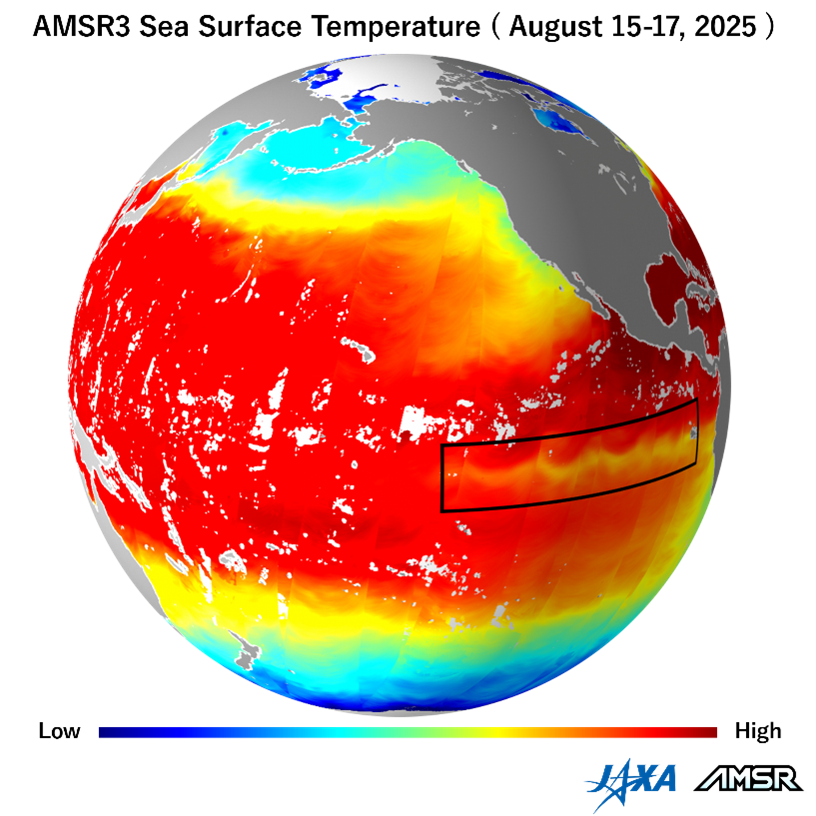 Figure 5:Sea surface temperature image observed by AMSR3 (average of descending paths from August 15 to 17, 2025)